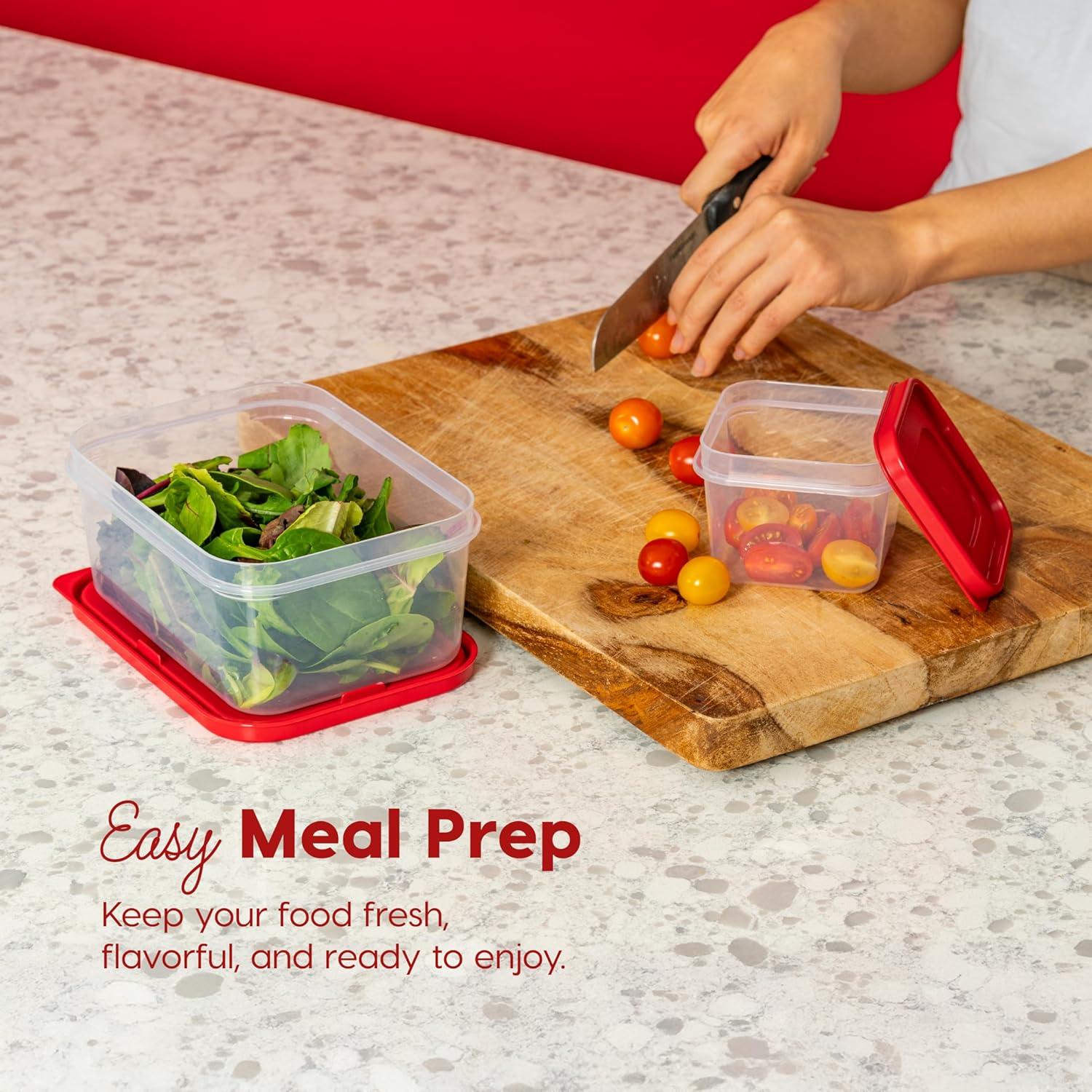 Made in USA, IRIS USA Meal Prep Containers simplify your meal prep and food storage with a variety of set sizes to fit your needs. These BPA-free containers come in multiple sizes, ideal for everything from full meals and leftovers to snacks and sauces. Use the large 45 oz containers for lunches, family-size portions, or bulk food. The 61 oz containers work great for bigger meals or party sides. Medium sizes like 16 oz and 12 oz are perfect for fruits, veggies, cookies, or granola. Smaller containers, including 8.32 oz and 3.2 oz, are designed for trail mix, cheese cubes, dips, dressings, or condiments. Crafted for everyday convenience, these containers are microwave, dishwasher, and freezer safe. Their clear design with bright red lids offers easy food identification. Perfect for meal prepping, office lunches, leftovers, or parties—IRIS USA Meal Prep Containers deliver versatile storage solutions for any lifestyle.