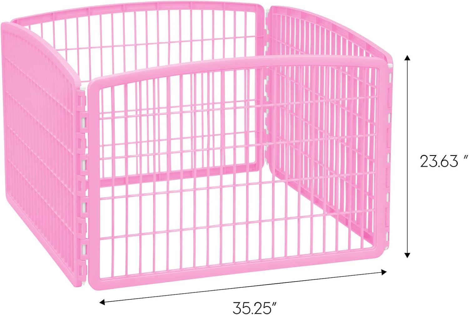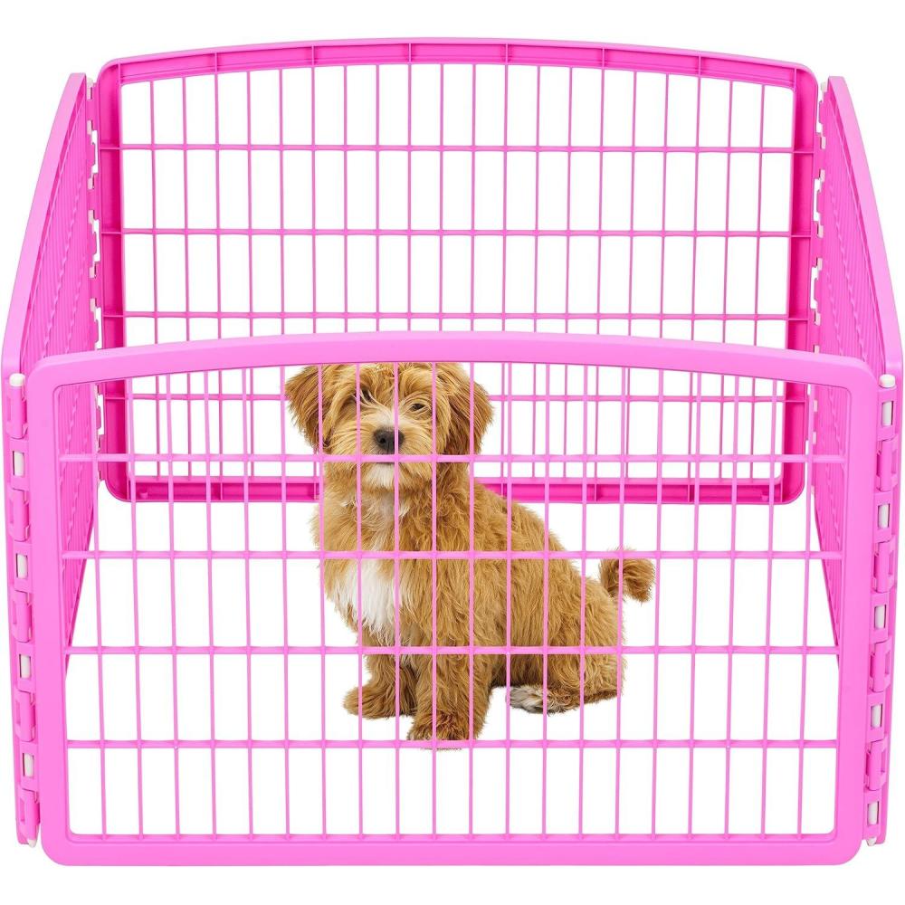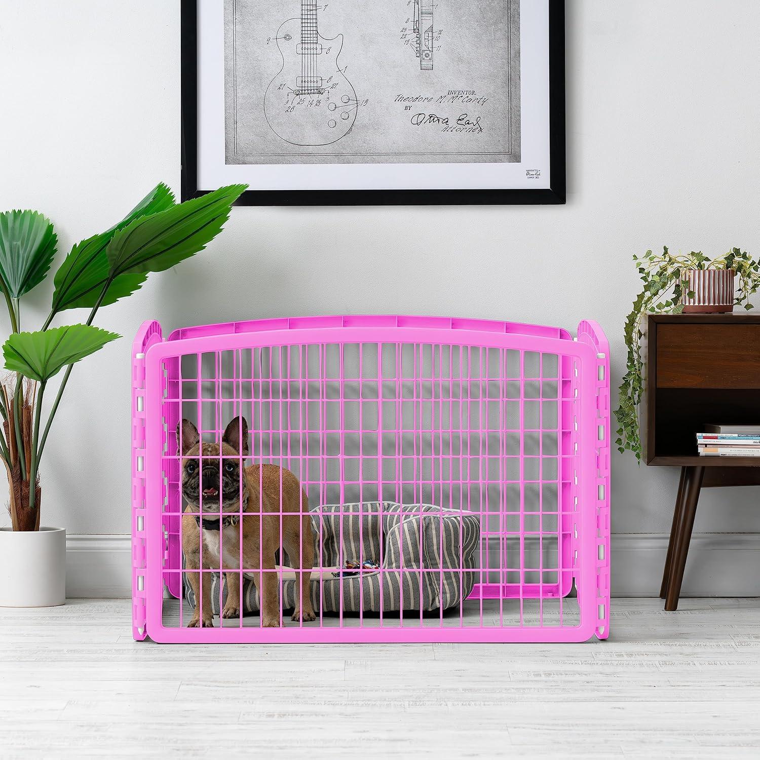 IRIS USA 24" Exercise 4-Panel Pet Playpen, Puppy Pet Small Medium Dog Pen Keep Pets Secure Easy Assemble Rust-Free Heavy-Duty Molded Plastic Customizable, Pink(Pink)