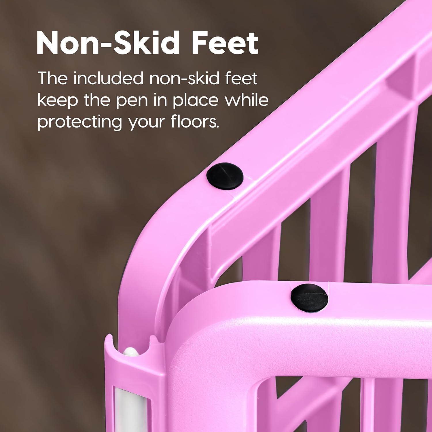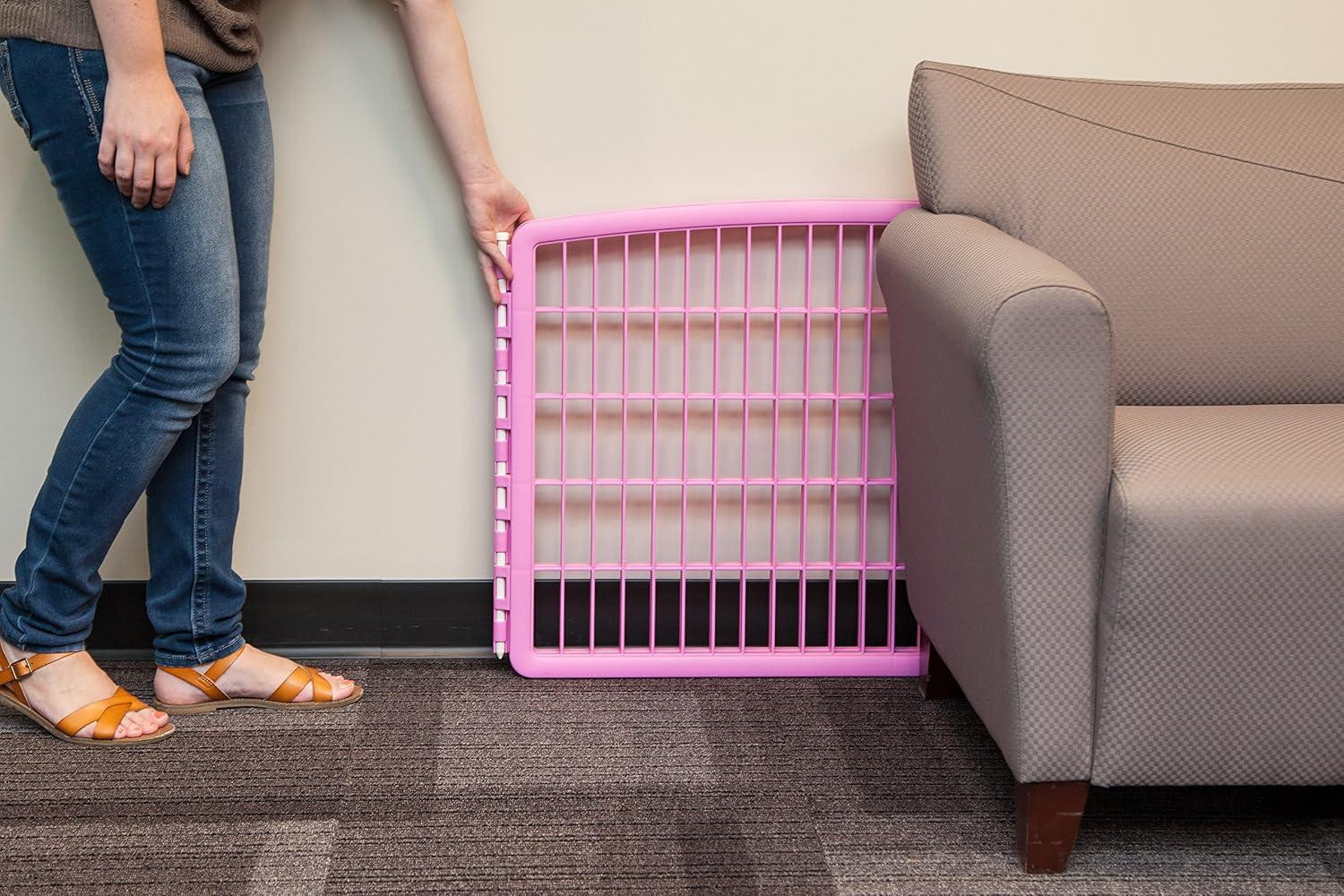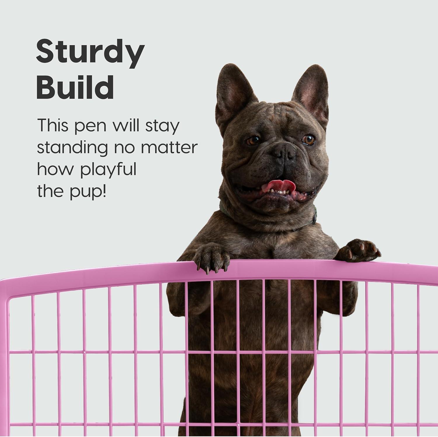 IRIS USA 24" Exercise 4-Panel Pet Playpen, Puppy Pet Small Medium Dog Pen Keep Pets Secure Easy Assemble Rust-Free Heavy-Duty Molded Plastic Customizable, Pink(Pink)