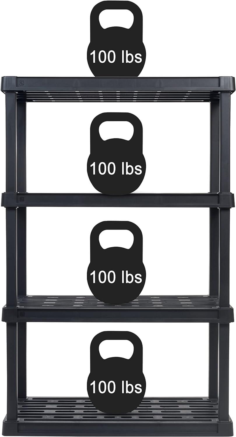 IRIS USA 4-Tier Heavy Duty Plastic Shelving Unit and Heavy Duty Storage Tote Bins, Modular Shelf Garage Rack Organizer + (4-Pack) 27 Gallon Storage Containers