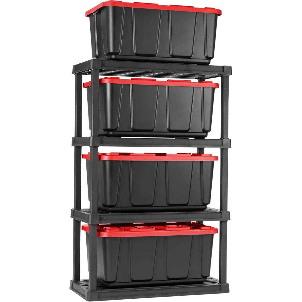 image:imageIRIS USA 4Tier Heavy Duty Plastic Shelving Unit and Heavy Duty Storage Tote Bins Modular Shelf Garage Rack Organizer  4Pack 27 Gallon Storage Containers