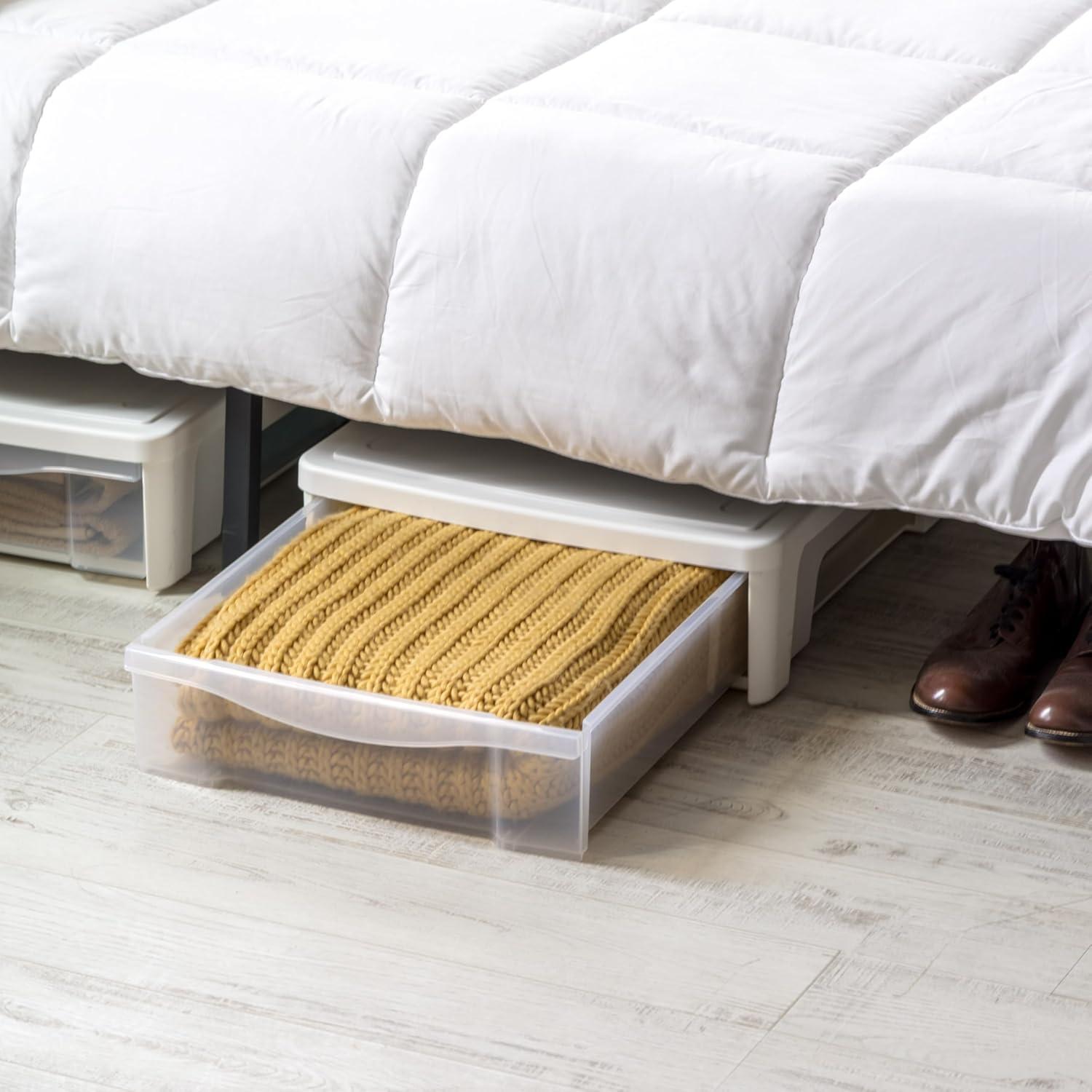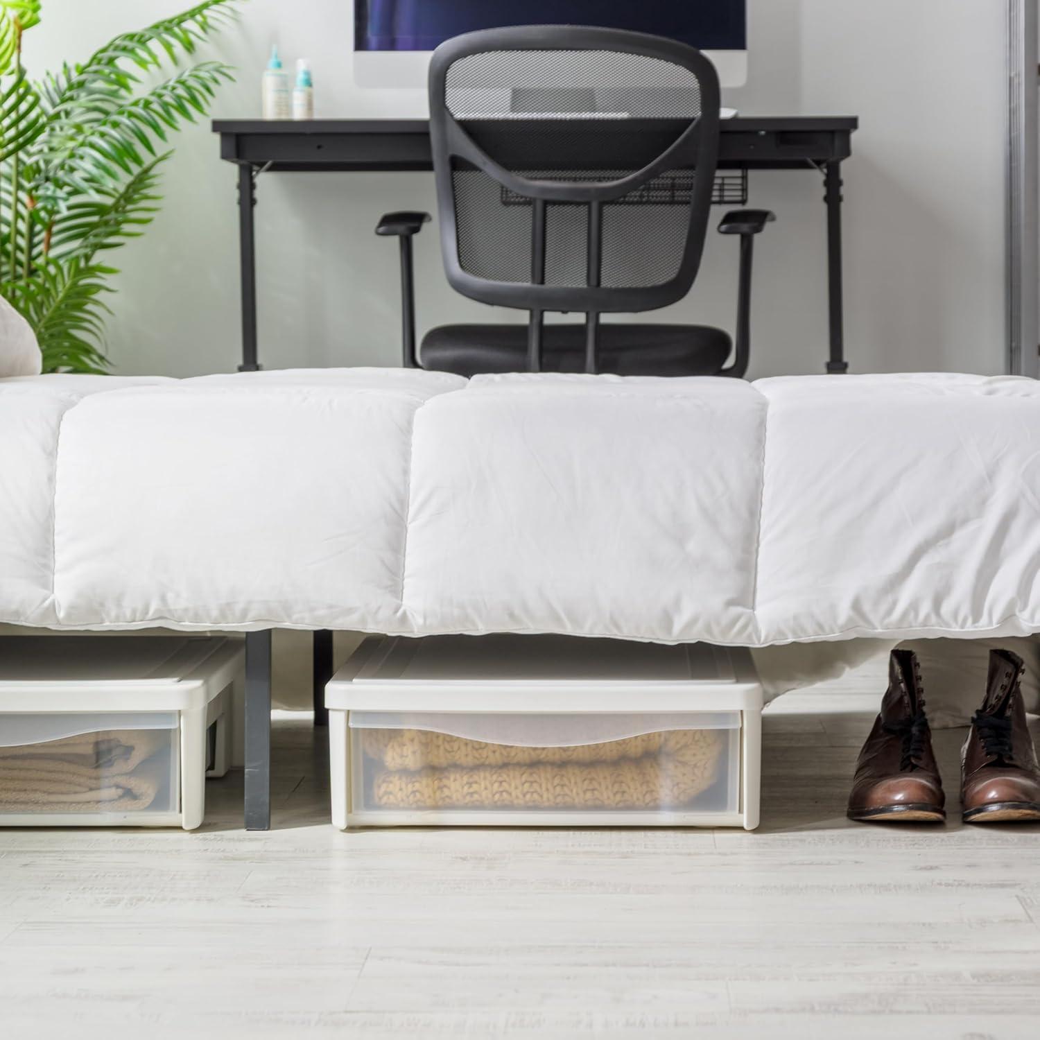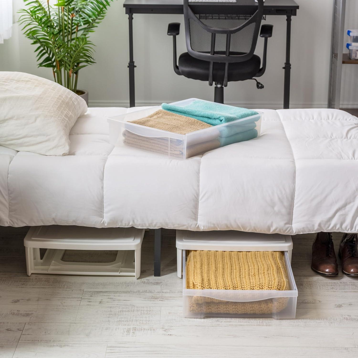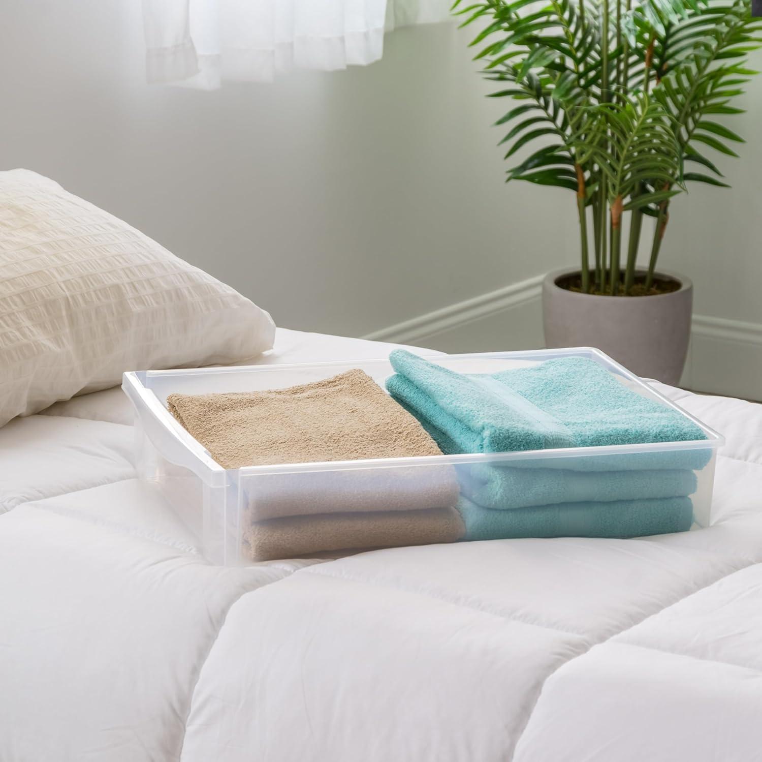 SLIDE-OUT UNDERBED STORAGE: The low-profile bins fit under most beds and feature secure buckled lids to keep contents dust-free. Ideal for seasonal items, linens, and shoes with a clear body for quick visibility.