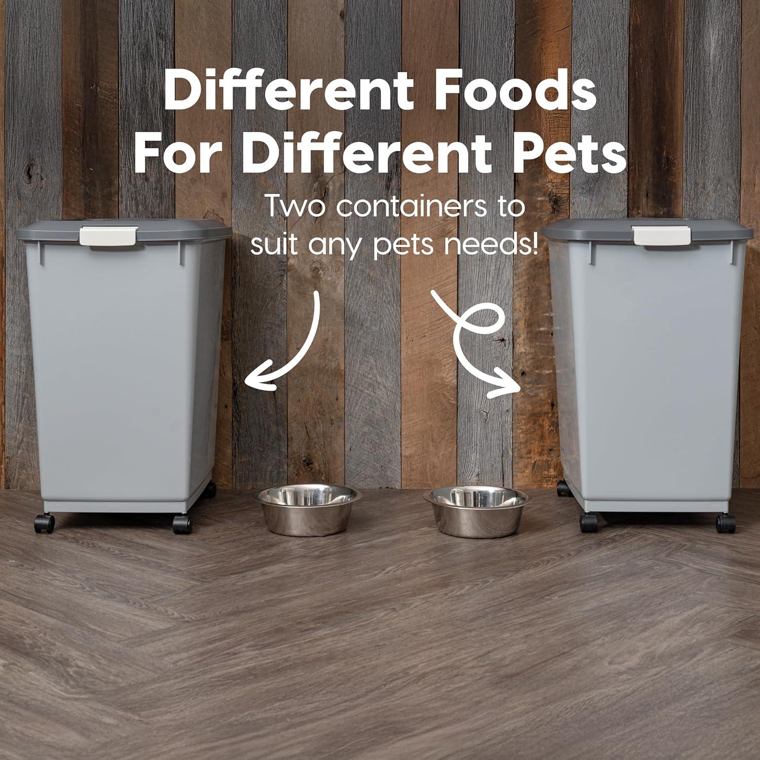IRIS USA Airtight Dog Food Storage Container, Up to 54 lbs, Attachable Wheels, For Dog Cat Bird and Other Pet Food Storage Bin, Keep Fresh, Translucent Body, Easy Mobility, 2 Pack, Black(Gray/Dark Gray)