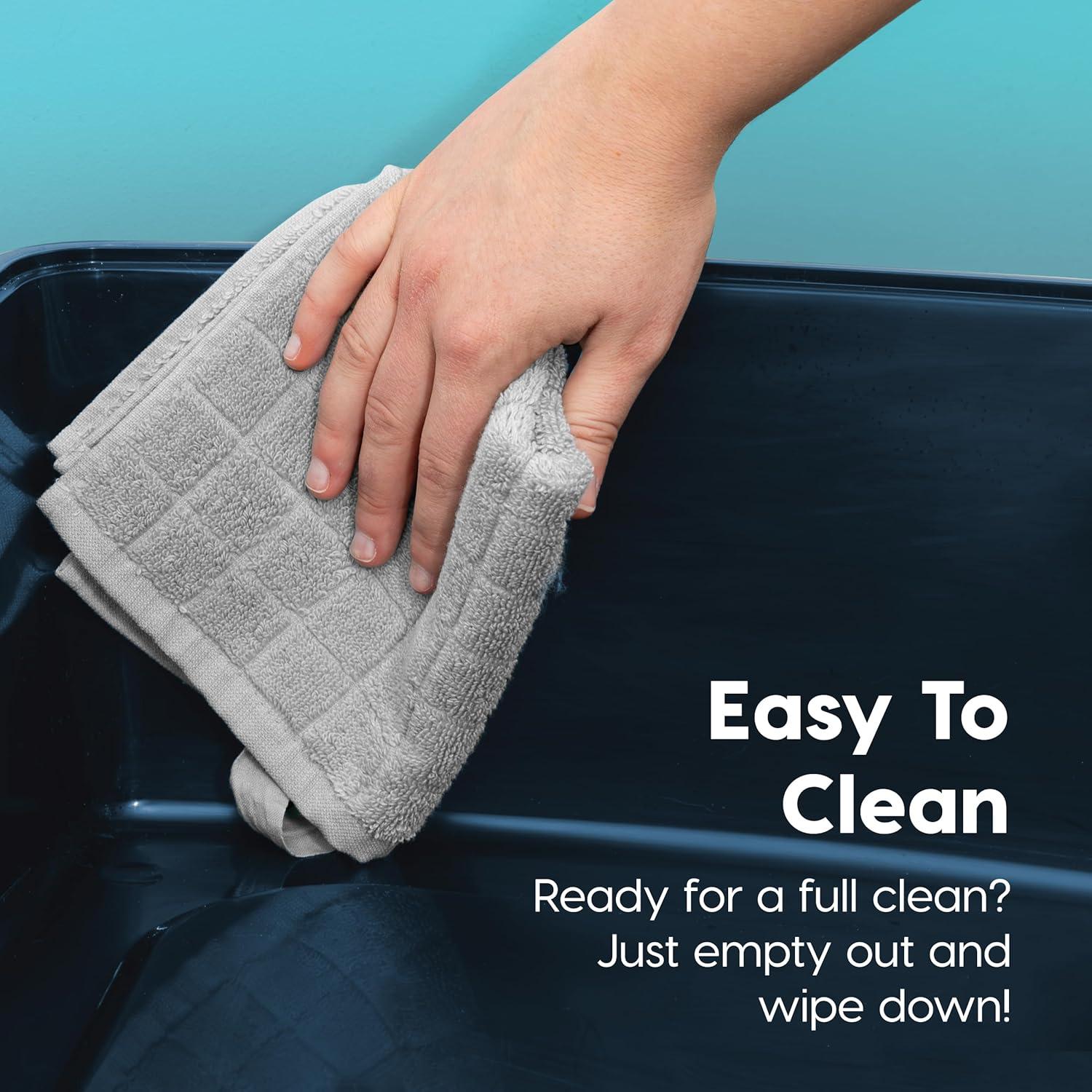 EASY CLEAN: Wide base and smooth plastic walls prevent litter from sticking. The open-top pan is quick to wipe down and easy to disassemble for deep cleaning.