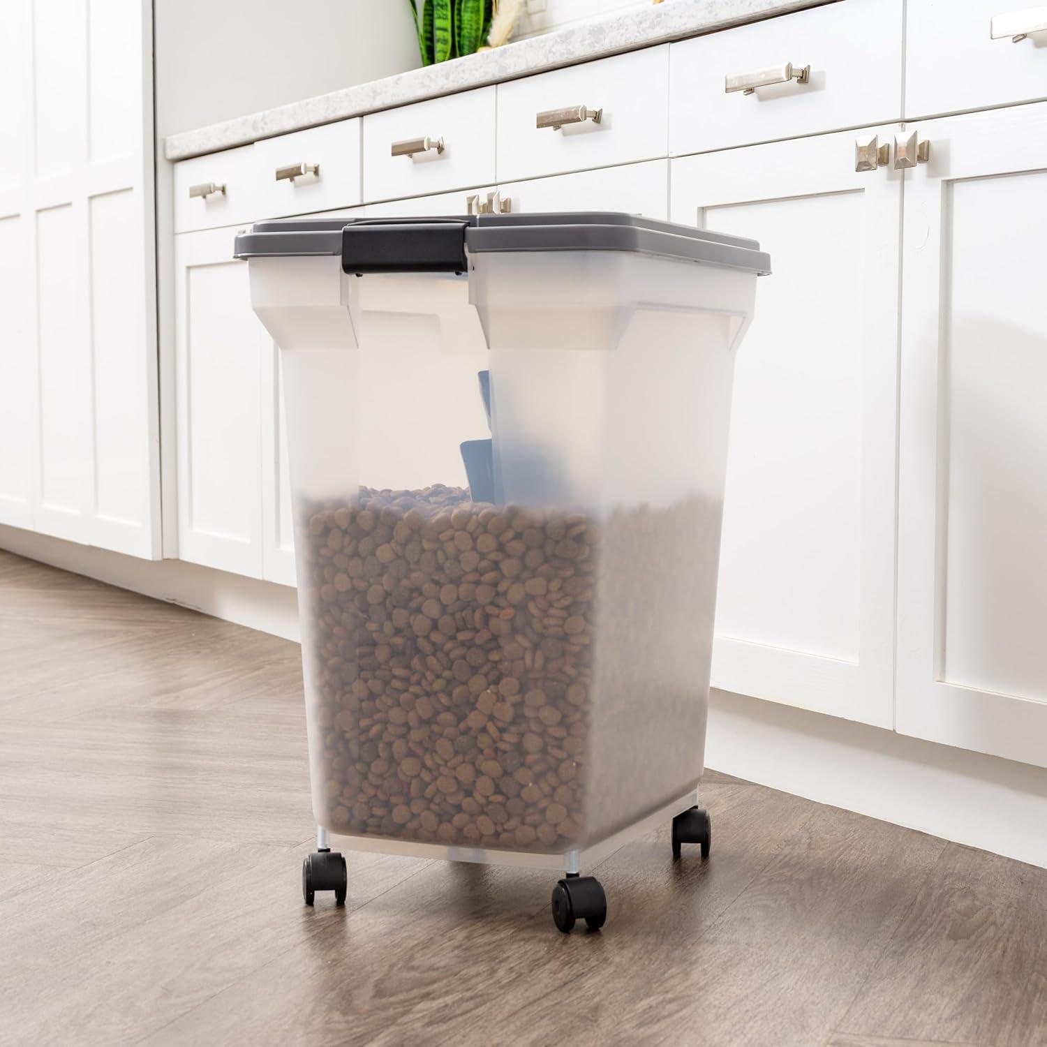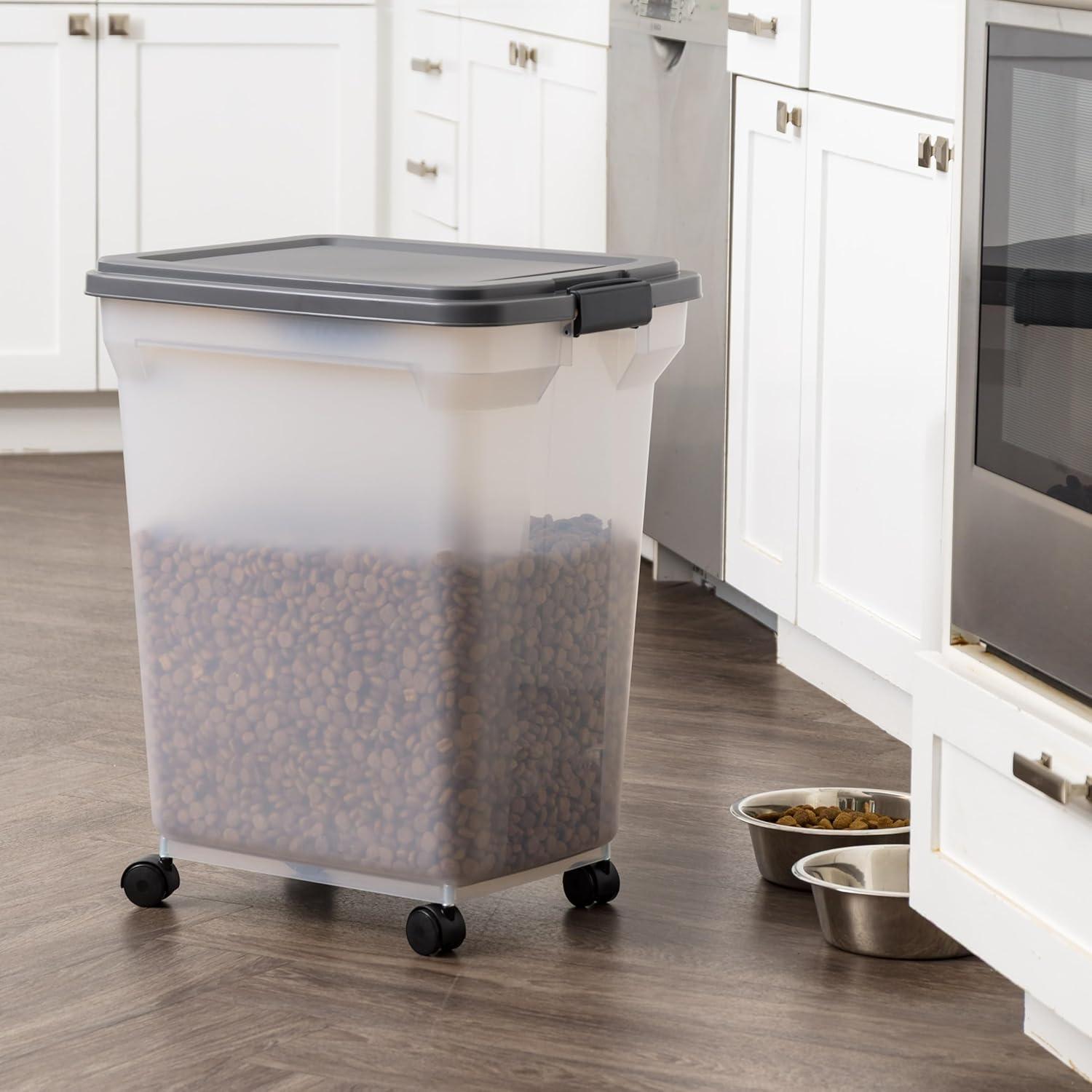 The IRIS USA Dog Food Storage Container is the perfect solution for storing dry pet food in a compact and convenient way. Designed with an airtight seal, this container helps keep your dog, cat, or bird food fresh longer by locking out moisture, pests, and odors.