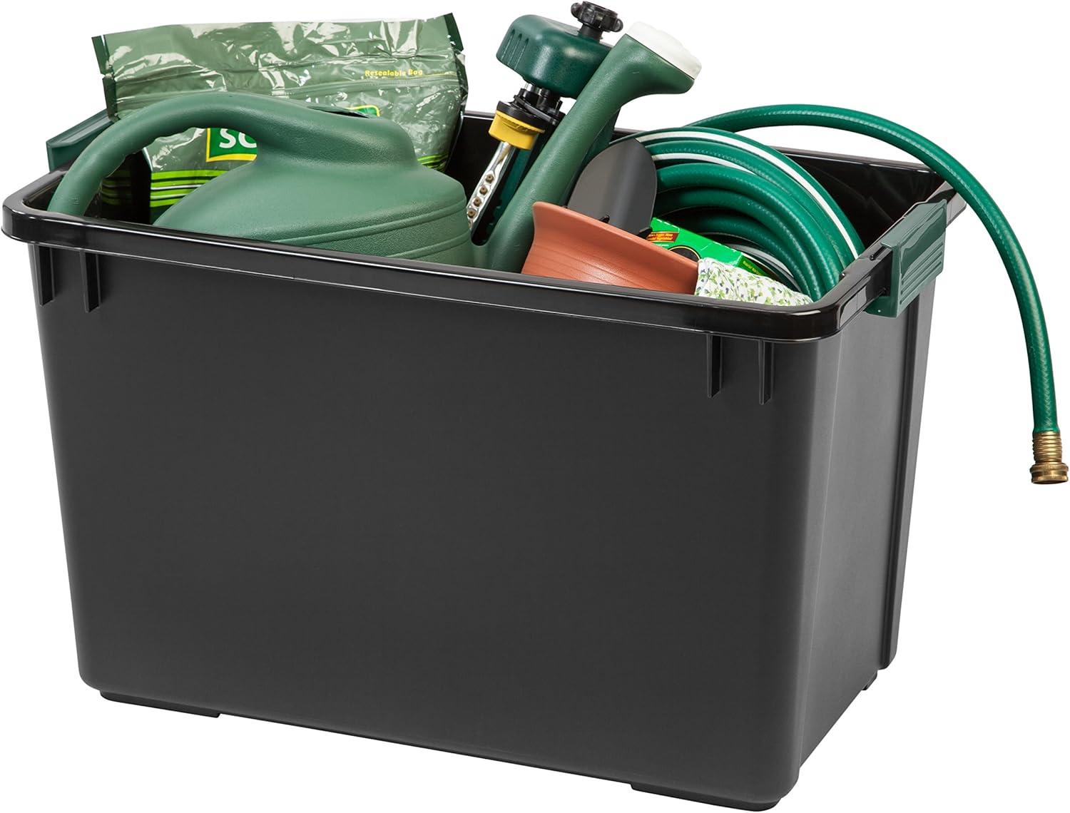 Remington 20 Gallon Loackable WEATHERTIGHT Storage Totes with Lids, Heavy-Duty Durable Stackable Containers, 4 Pack – Green Lid, Large Garage Organizing Bins, Rugged Sturdy Equipment Utility Tool Box(87.4 Quart)