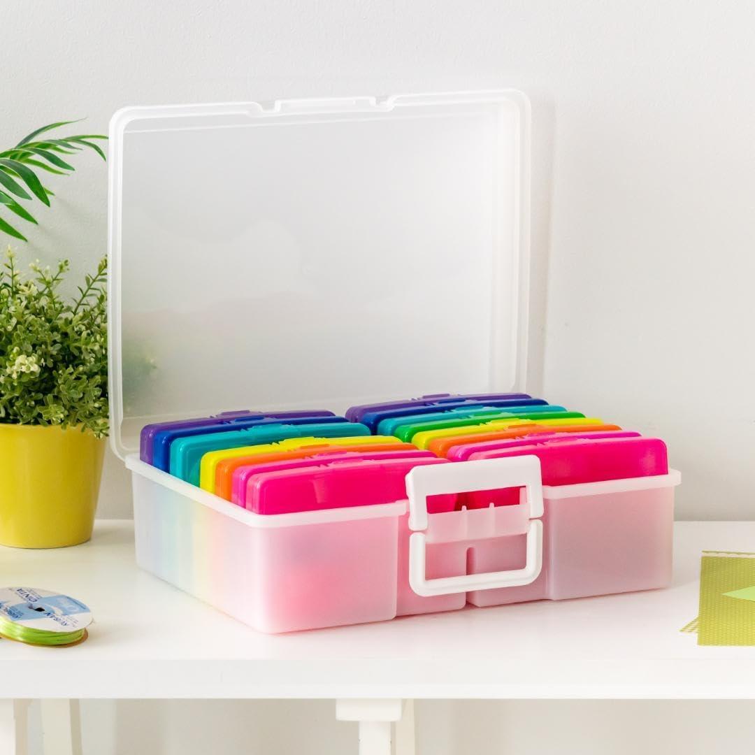 Organize, protect, and simplify your storage with this all-in-one WeatherPro IRIS USA photo and craft keeper, featuring multiple removable inner cases housed in a discreet, durable main container—perfect for storing photographs, scrapbooking supplies, craft embellishments, stationery, index cards, flashcards, seed packets, game pieces, stickers, and more; each inner case includes snap-tight closures to keep contents secure and rounded corners to protect delicate items, while the stackable outer container ensures easy portability, Weather resistant protection, and space-saving storage at home, or on the go; ideal for photographers, teachers, crafters, scrapbookers, and organizers of all kinds, this photo organizer and storage solution is made with high-quality, acid-free, BPA-free materials to preserve your items long-term without damage or fading; whether you're sorting keepsakes, organizing craft supplies, or managing office materials, this clear photo box storage system provides the flexibility and protection you need to stay organized with ease.