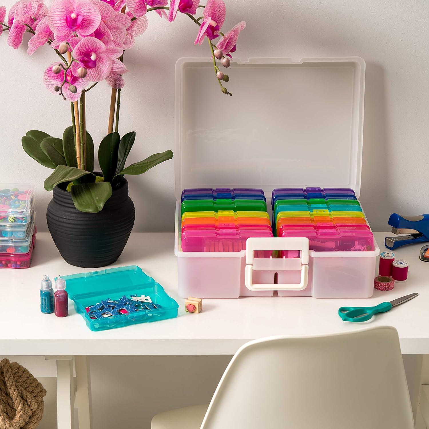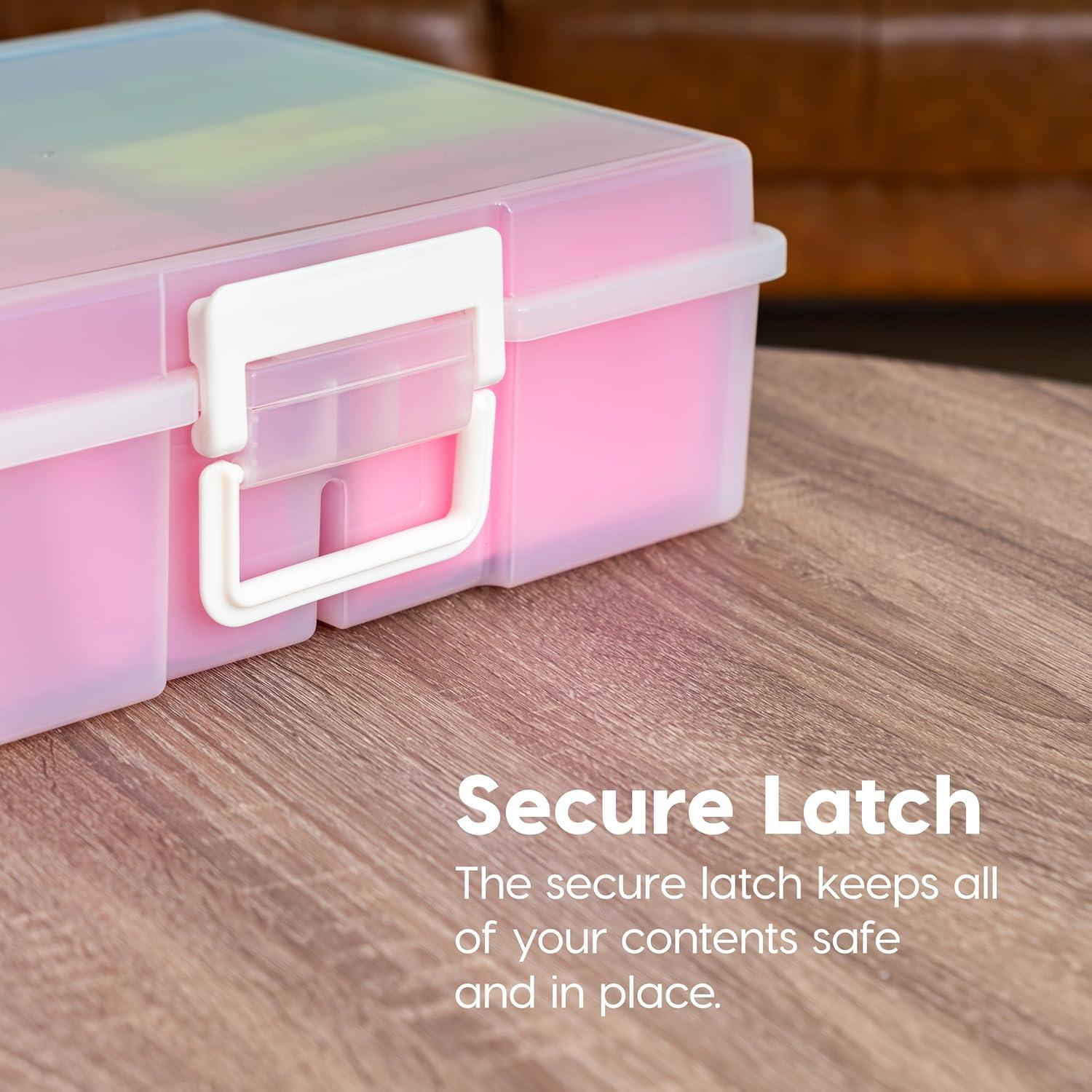 Organize, protect, and simplify your storage with this all-in-one WeatherPro IRIS USA photo and craft keeper, featuring multiple removable inner cases housed in a discreet, durable main container—perfect for storing photographs, scrapbooking supplies, craft embellishments, stationery, index cards, flashcards, seed packets, game pieces, stickers, and more; each inner case includes snap-tight closures to keep contents secure and rounded corners to protect delicate items, while the stackable outer container ensures easy portability, Weather resistant protection, and space-saving storage at home, or on the go; ideal for photographers, teachers, crafters, scrapbookers, and organizers of all kinds, this photo organizer and storage solution is made with high-quality, acid-free, BPA-free materials to preserve your items long-term without damage or fading; whether you're sorting keepsakes, organizing craft supplies, or managing office materials, this clear photo box storage system provides the flexibility and protection you need to stay organized with ease.