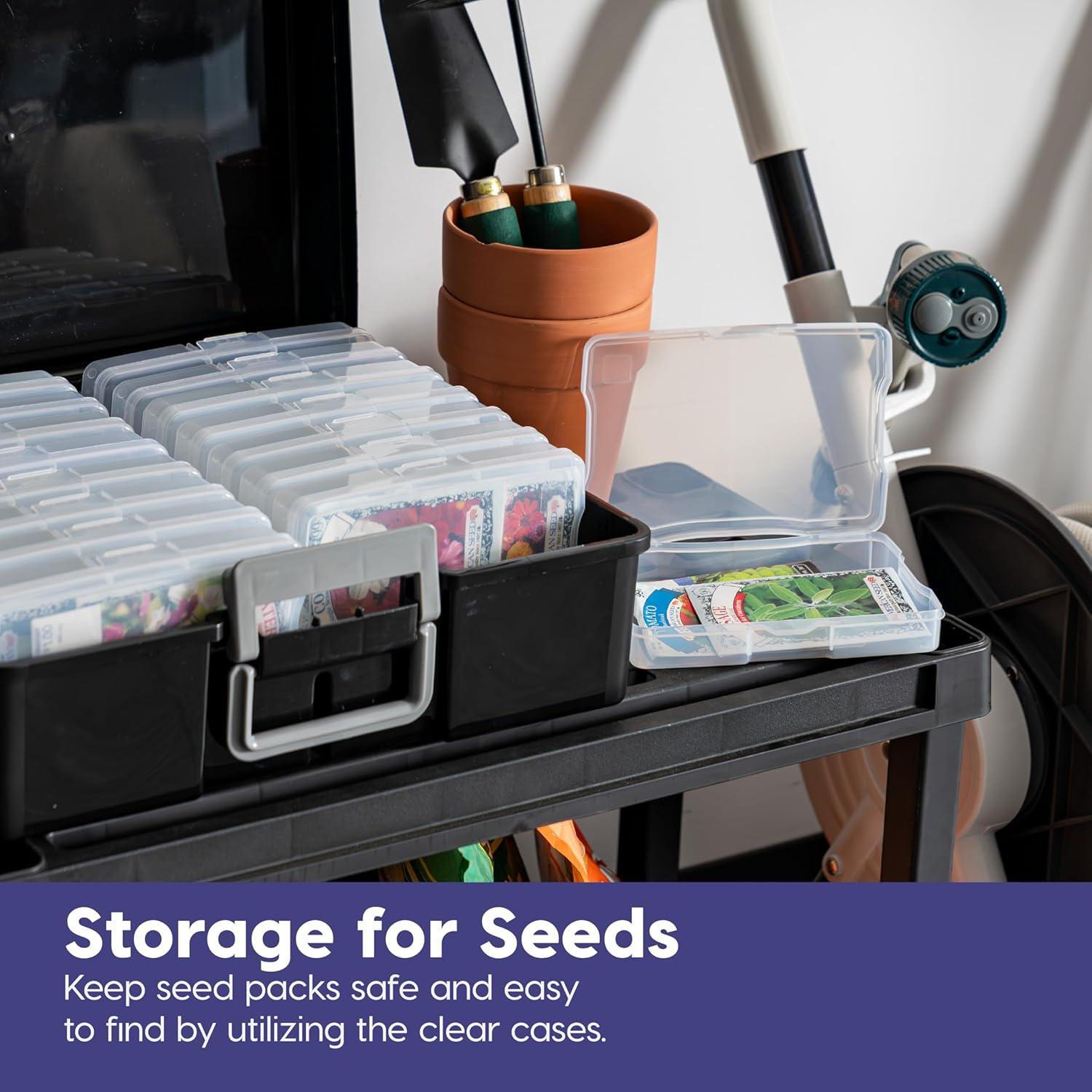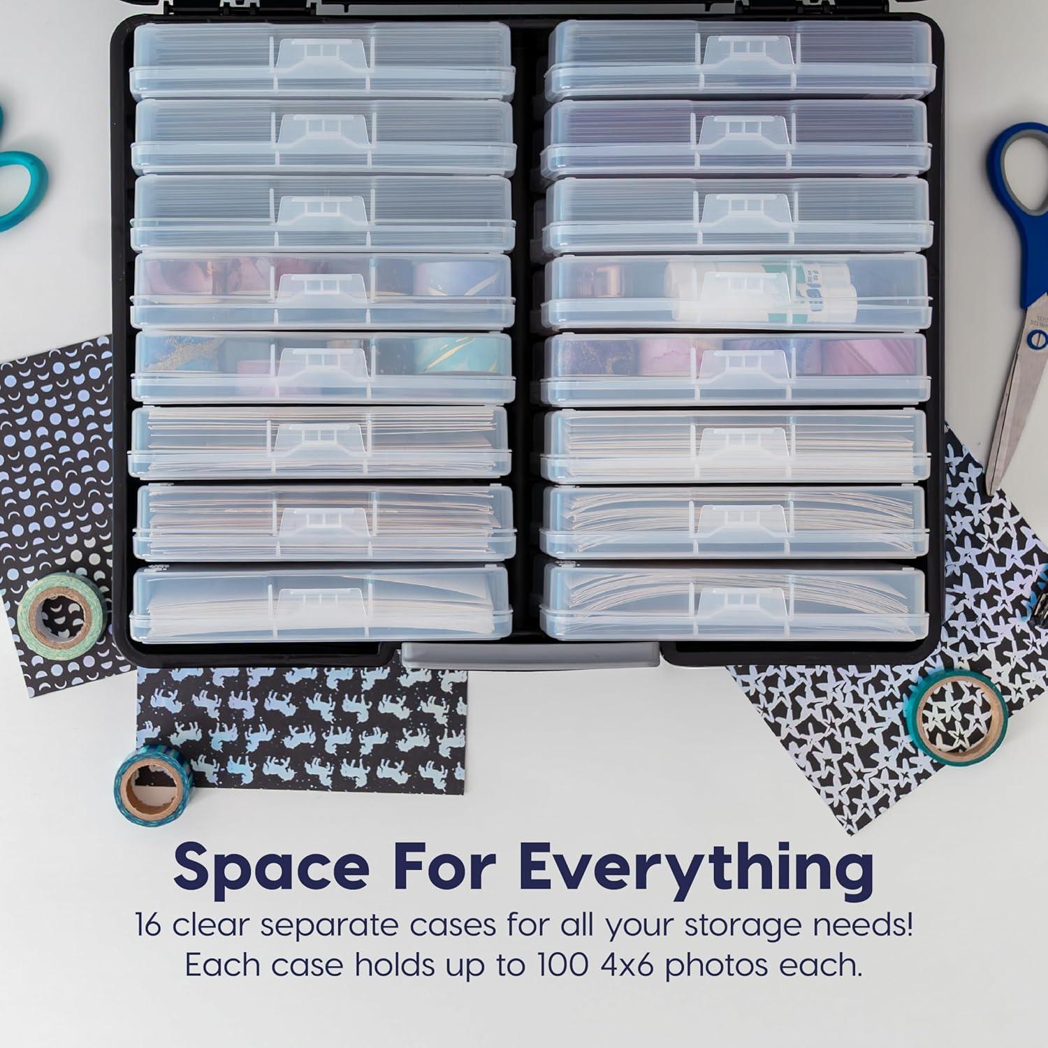 Organize, protect, and simplify your storage with this all-in-one WeatherPro IRIS USA photo and craft keeper, featuring multiple removable inner cases housed in a discreet, durable main container—perfect for storing photographs, scrapbooking supplies, craft embellishments, stationery, index cards, flashcards, seed packets, game pieces, stickers, and more; each inner case includes snap-tight closures to keep contents secure and rounded corners to protect delicate items, while the stackable outer container ensures easy portability, Weather resistant protection, and space-saving storage at home, or on the go; ideal for photographers, teachers, crafters, scrapbookers, and organizers of all kinds, this photo organizer and storage solution is made with high-quality, acid-free, BPA-free materials to preserve your items long-term without damage or fading; whether you're sorting keepsakes, organizing craft supplies, or managing office materials, this clear photo box storage system provides the flexibility and protection you need to stay organized with ease.